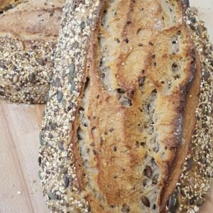 Particularités : Pain artisanal, fermentation longue, riche en fibres et nutriments
